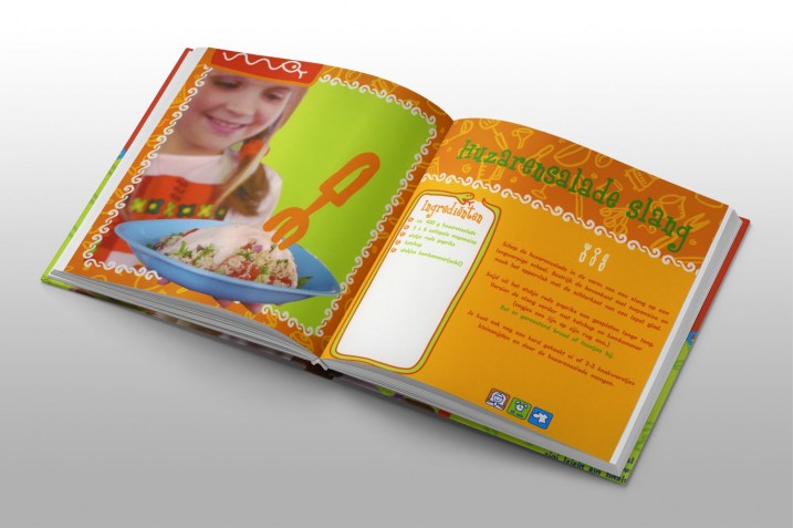 Kinderen krijgen met het Aldi-kinderkookboek vanzelf zin om mee te helpen met koken of om zelf te koken. NJI maakte een speelse opzet met veel ruimte voor kleurrijke en uitnodigende fotografie.