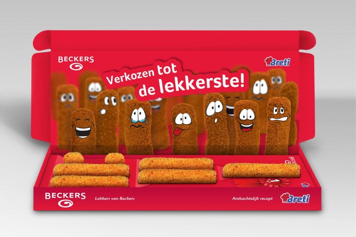 Opdrachtgever: Izico snacks Designer: Esther Martis-Lips Om cafetariahouders en consumenten te overtuigen van de verpletterend lekkere smaak van de (vernieuwde) Beckers kroketten, bedacht NJI een saleskit voor de cafetariahouders in België en Nederland. Hiermee konden de Salesmanagers van Beckers op pad. In de kit was ruimte voor enkele bevroren kroketten en bitterballen, zodat de cafetariahouders zelf konden ervaren waarom deze snacks verkozen zijn tot de lekkerste!