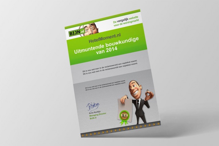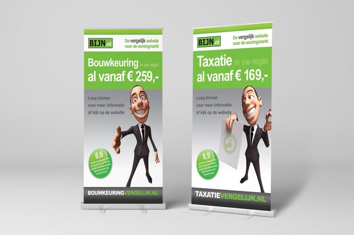 BIJN faciliteert met vergelijkingssites particulieren bij het maken van de juiste keuze op woongebied. NJI ontwikkelde voor BIJN mascotte Fred, die tot leven komt in alle uitingen die NJI ook voor BIJN ontwierp, zoals de website, beursstands, flyers, raamaffiches en actiematige mailings.