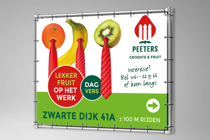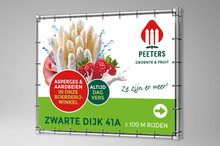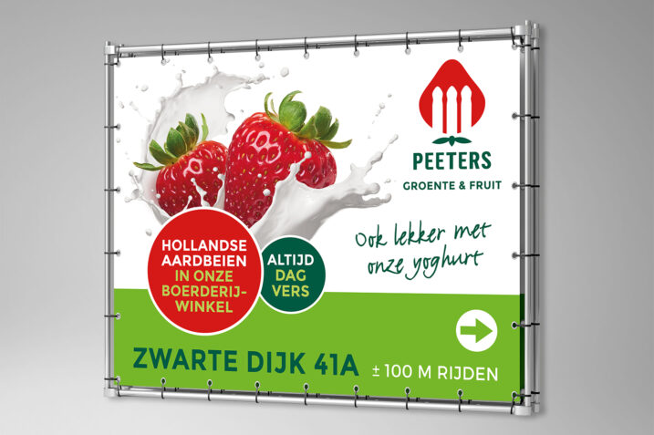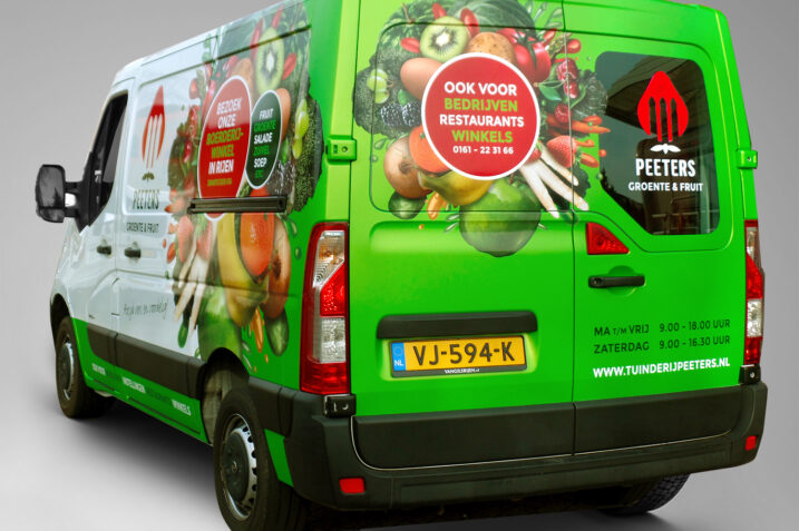 De voorheen saaie witte bestelbus is hét uithangbord geworden voor de boerderijwinkel. Het fruit en de groente knallen bijna letterlijk van de bus. Je kunt het niet negeren. Missie geslaagd! Wie de bus ziet rijden, krijgt meteen zin in de gezonde groenten en fruit van Boer Peeters. In dezelfde stijl ontwierp NJI ook diverse spandoeken en andere uitingen.