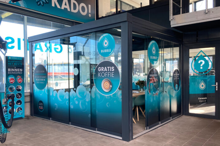 NJI was al vanaf de eerste bouwtekeningen betrokken bij deze mooie en lange wasstraat in Brabant en dacht tot in detail mee over de complete Corporate Idenity zoals o.a.: