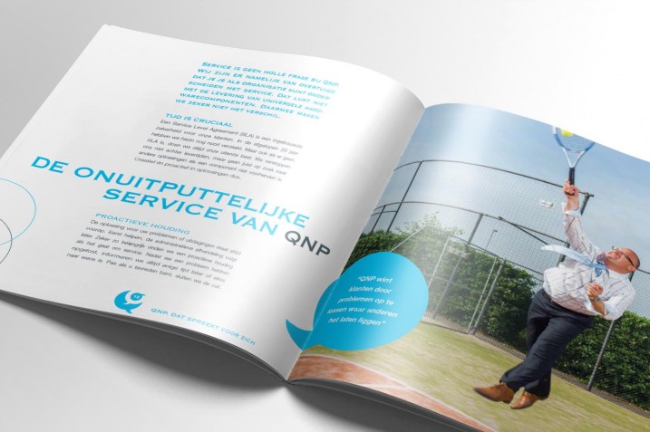 Voor QNP ontwikkelde NJI de huisstijl waarmee deze betrouwbare en professionele specialist in telecom en ICT opvalt. De krachtige kleuren blauw en grijs brengen eenheid en herkenning, terwijl de ‘spreekwolken’ visualiseren dat QNP ontastbare materie zoals clouddiensten juist tastbaar maakt. Deze spreekwolken blijken in de praktijk een geweldig visuele tool om in alle marketinguitingen te gebruiken. Ook de pay-off ‘QNP. Dat spreekt voor zich’ is door NJI bedacht.