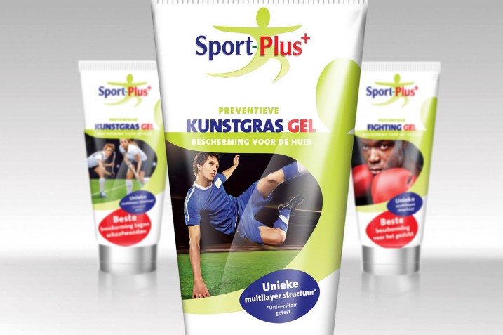 Sportplus+ levert middelen die sporters faciliteren bij het uitoefenen van hun sport. Om direct op de verpakking te zien voor welke sporters en situaties het product is bedoeld, ontwierp NJI een professionele verpakkingslijn voor o.a. spierbalsem, kunstgrasgel en fighting gel.