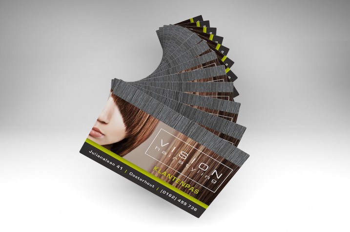 Bij Vision Hairstyling in Oosterhout wil het gepassioneerde en professionele team maar één ding: tevreden klanten. Om dat te bereiken, investeert het bedrijf veel in scholing en ontwikkeling van medewerkers. Vision Hairstyling vernieuwt zichzelf steeds opnieuw. De marketinguitingen groeien met het bedrijf mee.