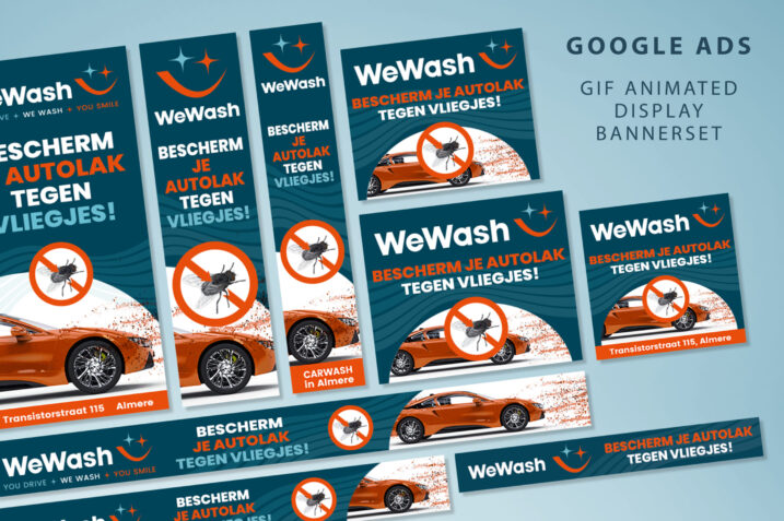 NJI dacht mee over de naam WeWash en voegde daar als pay-off ‘You drive. We wash. You smile.’ aan toe. De kleuren van het indrukwekkende bedrijfspand zijn terug te zien in de huisstijl, aangevuld met het krachtige oranje. Werkelijk over alles mag NJI meedenken, tot en met de kleur van alle wasborstels aan toe. Een geweldige toevoeging aan het portfolio van NJI.